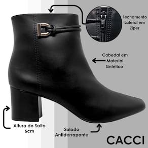 Durabilidade: Construída com materiais duráveis e resistentes, a Bota Feminina Cano Baixo Salto Médio Cacci é desenvolvida para oferecer longa durabilidade, acompanhando você em muitas aventuras.