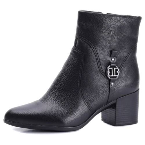 Bota Feminina Detalhe Metalizado Couro Salto Bloco Bottero - 36 - Preto