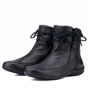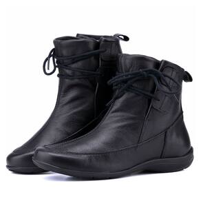 Bota Feminina Em Couro Preta Cano Curto Com Cadarços Fashion - 36 - Preto