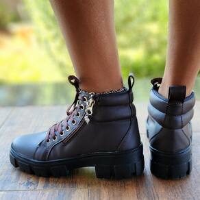 Bota Feminina com Solado tratorado Plataforma Descubra o Charme do Conforto para seus treinos ou passeio com nosso coturno feminino Características Principais: Cabedal: Sintético Forro: Tecido Antibacteriano Palmilha: Confort Eva 4mm Sola: Borracha Antiderrapante Altura Da Sola: 5 Centrimetros Metais: Antioxidante Ajuste: Cadarço Fios De Algodão E Zíper Reforçado Peso: 0.600g Atenção na hora de escolher seu tamanho, o Tênis possui FORMA NORMAL, pedir o número que já está acostumado a usar, temos aqui a abaixo uma tabela aproximada de cm da palmilha para usarem como referência. TAMANHO DE PALMILHA 33 - 22.9 cm 34 - 23.2 cm 35 - 24.0 cm 36 - 24.5 cm 37 - 25.0 cm 38 - 26.0 cm 39 - 27.0 cm 40 - 27.5 cm Não perca a chance de adicionar um toque de elegância e conforto ao seu guarda-roupa. Clique em "Comprar Agora" e experimente a combinação perfeita de estilo e comodidade com nossos Coturnos Femininos. Seu próximo par de sapatos favorito está a apenas um clique de distância!