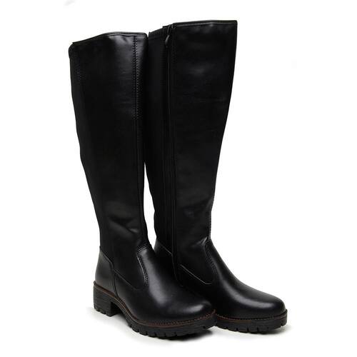 Bota Montaria confeccionada em material sintético e Neoprene. Para um melhor calço, oferece um zíper na lateral facilitando seu uso. A sola foi desenvolvida em borracha, com salto de 4 Cm, trazendo comodidade e estilo para ser usada em todas as ocasiões.