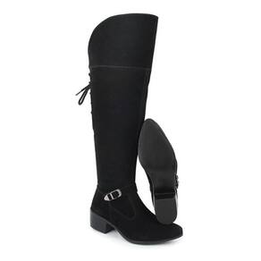 Bota Feminina Montaria Casual De Camurça Inverno Country - 38 - Preto