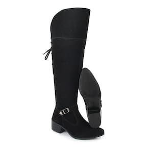 Bota Feminina Montaria Casual De Camurça Inverno Country - 40 - Preto