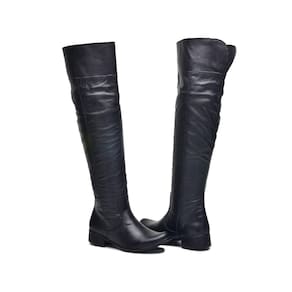 Bota Feminina Over The Knee Couro Cano Alto Zíper Moderna - 34 - Preto