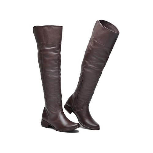 Bota Feminina Over The Knee Couro Cano Alto Zíper Moderna - 38 - Marrom