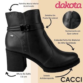 A Bota Dakota de Cano Curto é a escolha certa para mulheres que valorizam elegância, conforto e versatilidade em um único calçado. Com design minimalista e detalhes metalizados que enriquecem o visual, essa bota é a peça essencial para transformar qualquer produção com praticidade e estilo. Confeccionada em material sintético de alta qualidade, proporciona leveza e resistência para o dia a dia, com peso de apenas 0,900 kg, garantindo conforto prolongado sem abrir mão da durabilidade. O salto bloco de 7,5 cm traz um toque de sofisticação e segurança ao caminhar, enquanto o cano, com 15 cm de altura e 27 cm de circunferência, valoriza a silhueta feminina com modernidade e versatilidade. Com fechamento prático que facilita o calce, essa bota é ideal para compor looks com jeans, vestidos ou saias, adaptando-se facilmente a diferentes ocasiões, seja para um dia cheio de compromissos, um passeio descontraído ou um encontro especial. Seu design atemporal torna essa bota uma aposta segura para quem busca beleza, conforto e autenticidade em cada passo.