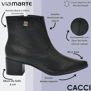 Com design contemporâneo e materiais nobres, essa bota é a escolha ideal para mulheres que desejam marcar presença com autenticidade, elegância e o toque inconfundível da Via Marte.