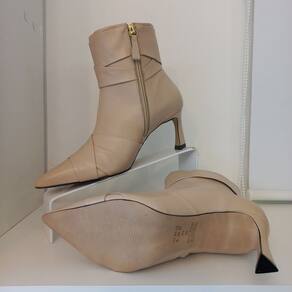 A Bota Feminina Dian Patris Bico Fino Salto Fino Médio Bege Claro confeccionado em Couro é uma peça clássica e atemporal. Possui tiras transpassadas que dão um charme a bota, com bico fino e salto fino tamanho médio de 7cm. Pela sua versatilidade, é peça obrigatório em todo guarda-roupa e acompanha muito bem cotidiano de trabalho ou aquele happy hour. Cor: Bege Claro (vanila) Fechamento: Zíper Marca: Dian Patris Material: Couro Salto: Fino Altura Salto: 7 cm Bico Fino Solado: antiderrapante MEDIDAS DA PALMILHA TAMANHO 34 23,2CM 35 24CM 36 24,5CM 37 25CM 38 25,8CM 39 26,2CM 40 27CM