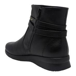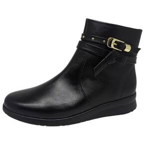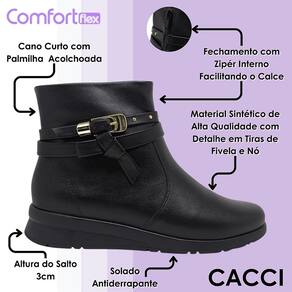 Confeccionada em material sintético de alta qualidade, essa bota garante durabilidade e um ajuste suave aos pés. A palmilha acolchoada no cano curto oferece um conforto a mais na região do tornozelo, enquanto o salto anabela de três centímetros proporciona leve elevação com excelente estabilidade e bem-estar ao caminhar.