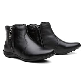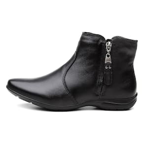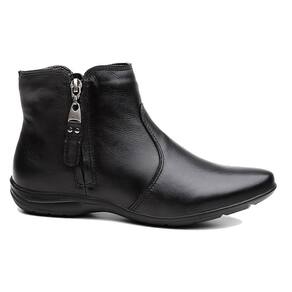 CARACTERÍSTICAS - Material Externo: Couro - Material Interno: Tecido espumado - Palmilha Interna: Material macio, próprio para absorção de impacto - Solado: Borracha leve, com alta aderência e abrasão - Fechamento: Zíper lateral interno - Detalhe: Couro e metal no zíper externo
