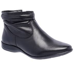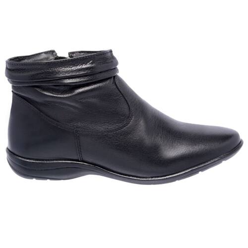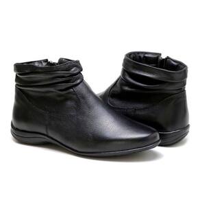 Bota Flat em Couro Feminino Rasteira Zíper Borda Camada Resistente Confortável - 33 - Preto