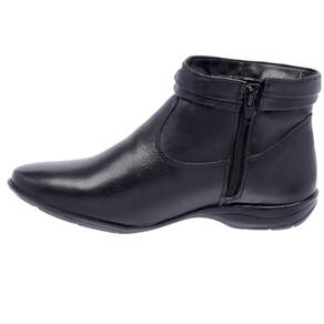 CARACTERÍSTICAS - Material Externo: Couro - Material Interno: Tecido espumado - Palmilha Interna: Material macio, próprio para absorção de impacto - Solado: Borracha leve, com alta aderência e abrasão - Fechamento: Zíper lateral interno - Detalhe: Couro e metal no zíper externo