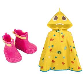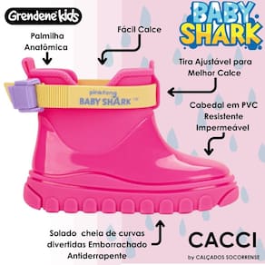 Essas galochas são mais do que simples calçados, são companheiras de brincadeiras sob a chuva! Feitas de PVC resistente e com uma sola cheia de curvas divertidas, cada passo é uma nova descoberta. A parte de cima é toda enfeitada com texturas a laser, simulando um oceano de cores e formas. E não podemos esquecer dos detalhes encantadores, como os dentinhos e a cauda do Baby Shark em 3D na capa de chuva, que deixam os pequenos ainda mais animados para enfrentar a chuva. Com fechamento fácil e ajustável, esse combo de galocha é perfeito para os dias chuvosos cheios de diversão.