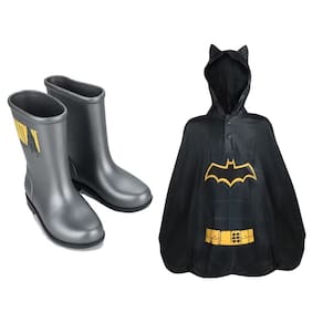 Imagina só, pequenos heróis enfrentando os dias chuvosos com estilo! A galocha Batman Rain Fun é como um acessório direto da Batcaverna para os pezinhos das crianças. Com um acabamento fosco que faz jus ao espírito sombrio do Cavaleiro das Trevas, essas galochas são verdadeiras obras-primas de contraste, com solas vibrantes contrastando com o cano escuro. Mas a diversão não para por aí! Cada par vem com uma capa que é mais do que uma simples proteção contra a chuva, é uma fantasia completa do herói, com detalhes 3D como as orelhas do Batman, garantindo que cada passo seja uma aventura épica.