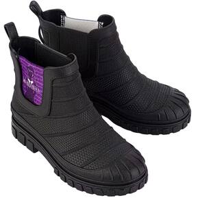 Para a marca que está super em evidência no universo das meninas trazemos a bota que tem total conexão com a personagem. Ela traz as texturas de alta definição e volumetrias. Para facilitar o calce o elástico. A bota galocha Wandinha feminina de borracha é um calçado versátil e resistente, projetado para proporcionar proteção contra condições climáticas adversas, como chuva e lama. Com um design funcional e cheio de estilo, essa bota é uma escolha ideal para enfrentar dias chuvosos com conforto e confiança. Fabricada em borracha de alta qualidade, a bota galocha Wandinha oferece durabilidade e impermeabilidade, mantendo seus pés secos e protegidos da umidade. A borracha também confere flexibilidade e resistência ao calçado, permitindo movimentos naturais e evitando o desgaste prematuro.