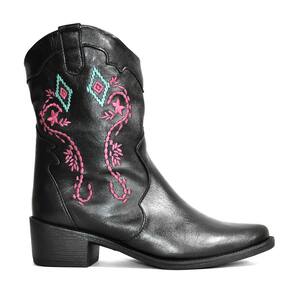 A Bota Godiva Country Texana Bordada Feminina Preta, é fabricada em material sintético da mais alta qualidade, trazendo muita sofisticação e estilo. Com o cano todo revestida por material multicolor, também conta com forro interno composto por material têxtil, sua palmilha, coberta por tecido e camadas de espuma, e seu solado emborrachado. O salto é bloco baixo.