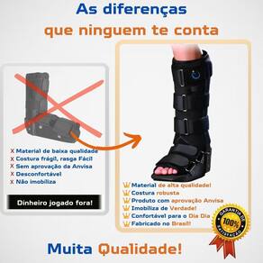 Benefícios: - Indicado para fraturas estáveis, na ausência de deformidades graves. - Luxações, entorses e lesões crônicas do tornozelo. - Prevenção e tratamento das deformidades geradas pela artrite reumatóide. - Produto possui barbatanas metálicas resistentes e leves que fornecem imobilização e possui solado antiderrapante em formato confortável. - Bilateral Qual tamanho comprar Utilize seu tamanho de calçado como referência para determinar o tamanho do produto: M - calçado 37 a 40 Composição: 40% poliamida, 30% algodão, 20% metal e 10% vinilal. Forma de uso / Colocação: Siga as etapas abaixo e utilize a imagem ao lado como referência. 01 Abra o produto soltando os fechos de contato. 02 Posicione o pé de forma anatômica na bota e fixe as partes de tecido aveludado, localizadas no peito do pé, uma na outra repare que uma das partes de tecido possui pequena parte de fecho de contato em sua parte inferior para essa fixação . 03 Fixe os fechos de contato localizadas no peito do pé transpassando as mesmas pelos passantes metálicos. 04 Realize o mesmo procedimento para as partes de tecido aveludado e os três fechos de contato localizadas na perna. 05 Verifique se os ajustes feitos deixaram o tornozelo imobilizado e a bota de forma justa à região. ANVISA: AF Nº 8.04.537-8 Responsável Técnica: Dra. Vanessa Dantas Aguiar CREFITO-3 Nº 39345 F CREFITO: RE Nº 5435-SP do vendedor: 7 dias Marca: Não Informado