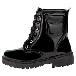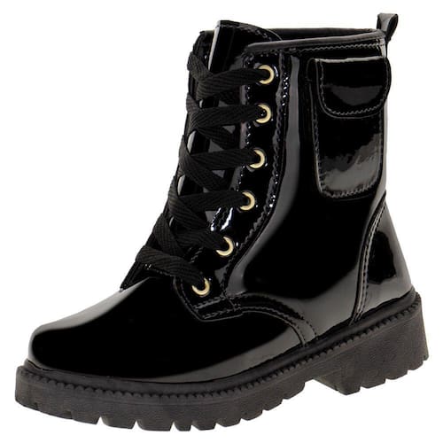 A Bota Infantil Feminina Coturno Gracinha é confeccionada em material envernizado com acabamento em costura, fechamento por cadarço, forro interno em têxtil, palmilha em EVA e solado em borracha com salto de três centímetros e meio. Esse modelinho possui cano de treze centímetros de altura por vinte e oito centímetros de circunferência.