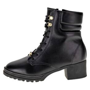 A Bota Infantil Feminina Coturno Molekinha é confeccionada em Napa Turim com acabamento em costura, fechamento por cadarço, forro interno em têxtil, palmilha em PU e solado em borracha. Esse modelo possui cano de catorze centímetros com vinte e nove de circunferência.