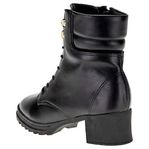 A Bota Infantil Feminina Coturno Molekinha é confeccionada em Napa Turim com acabamento em costura, fechamento por cadarço, forro interno em têxtil, palmilha em PU e solado em borracha. Esse modelo possui cano de catorze centímetros com vinte e nove de circunferência.