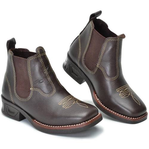 Bota Infantil Country Couro Botina Luz de Led Conforto - 29 - Marrom