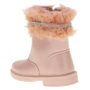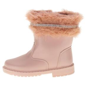 A Bota Infantil Feminina Doce Menina é confeccionada em material de alta qualidade com acabamento em costura, detalhe em pelo na parte superior com aplicação de strass fechamento por zíper lateral, forro interno em têxtil, palmilha em PU e solado em borracha antiderrapante. Esse modelo possui cano com catorze centímetros de altura por vinte e oito centímetros de circunferência.