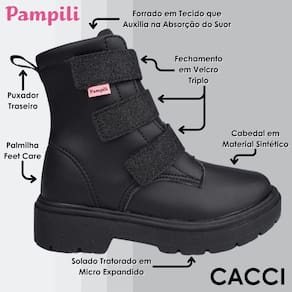 Bota coturno feminina cano médio em material sintético com recortes de glitter no tira autocolante e na parte traseira, moderna e descolada! Forrado em tecido que auxilia na absorção do suor.