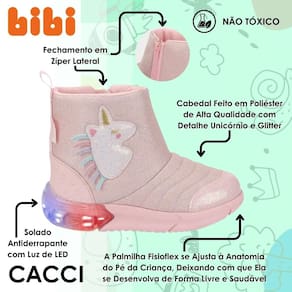 Confeccionada em poliéster, um material leve e respirável, ela oferece liberdade de movimento e conforto ao caminhar. O calce fácil garante praticidade para o dia a dia, enquanto a palmilha Fisioflex proporciona a sensação de andar descalço, estimulando a percepção sensorial e favorecendo o desenvolvimento saudável dos pés em crescimento. E para deixar tudo ainda mais especial, ela conta com luzes de LED que piscam a cada passo, tornando qualquer momento mais divertido e inesquecível. Seja para passeios, festas ou o dia a dia, essa bota é a união perfeita entre moda, conforto e diversão. Adquira agora e deixe a rotina da sua pequena ainda mais mágica!