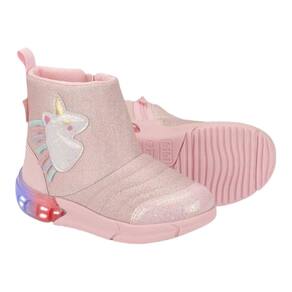 Procurando uma bota quentinha e estilosa para sua pequena? Apresentamos a Bota Infantil Feminina Rosa com Unicórnio e Luz de LED, o modelo perfeito para meninas que amam um toque de magia em cada passo. Com design encantador na cor rosa, detalhes cintilantes e aplique de unicórnio, essa bota é ideal para compor looks divertidos, modernos e cheios de personalidade.