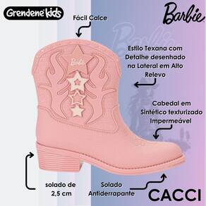 A moda country invadiu o universo infantil com muito estilo e agora ganha um toque de puro glamour com a Bota Texana da Barbie! Inspirada no sucesso das cantoras sertanejas e no lifestyle do campo que está bombando nas redes sociais, essa novidade do portfólio Grendene Kids une o charme rústico do estilo western com a elegância fashion da personagem mais icônica do mundo. A bota traz elementos clássicos do visual country, como o cano médio, bico levemente fino e texturas hiper-realistas que simulam materiais sofisticados, tudo adaptado à linguagem lúdica e encantadora do universo infantil. Em destaque, um aplique de estrelas na lateral reforça o toque mágico da oficial Barbie, deixando o look ainda mais estiloso e cheio de atitude. Feita com material resistente e de alta qualidade, essa bota garante durabilidade e proteção para as aventuras das pequenas, enquanto o solado antiderrapante oferece segurança nos passinhos do dia a dia. A palmilha é supermacia e o calce fácil proporciona autonomia e conforto durante o uso. Seja para compor produções criativas, brincar de faz de conta ou arrasar no visual em qualquer ocasião, a Bota Texana Barbie é a escolha perfeita para quem ama brilho, moda e muita personalidade!