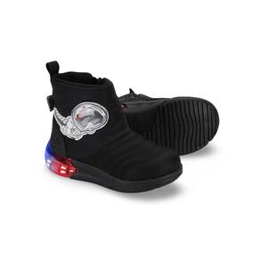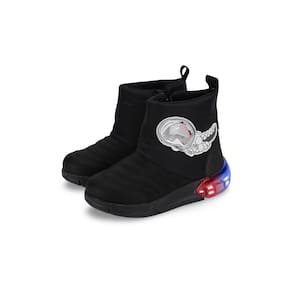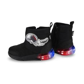 Design Jurássico e Divertido: Confeccionada em poliéster, um material leve e respirável, esta bota preta apresenta um incrível design de dinossauro, perfeito para os fãs de aventuras pré-históricas. Conforto Aconchegante: Projetada para o calce fácil, a Bota Space de Luz une conforto, estilo e praticidade, proporcionando liberdade de movimento e maciez ao caminhar, ideal para as aventuras diárias. Tecnologia para o Desenvolvimento: A palmilha Fisioflex exclusiva da Bibi promove a sensação de andar descalço e proporciona ainda mais conforto, estimulando a percepção sensorial e as terminações nervosas, o que contribui para o desenvolvimento natural e saudável dos pés das crianças. Luzes que Iluminam a Diversão: O grande diferencial são as luzes de LED que piscam a cada passo, tornando as brincadeiras ainda mais emocionantes e cheias de luz! Com capacidade de duzentos mil ciclos, não há necessidade de carregamento.