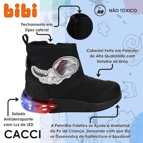 Procurando uma bota quentinha e estilosa para seu pequeno? Apresentamos a Bota Infantil Masculina Preta com estampa de Dino e luzes, perfeita para os meninos que amam aventuras jurássicas e querem se destacar em cada passo! Confeccionada em poliéster, ela é leve, respirável e oferece liberdade de movimento, além de proporcionar maciez e conforto ao caminhar. O calce fácil garante praticidade no dia a dia, tornando essa bota uma excelente aliada para as brincadeiras e atividades escolares.