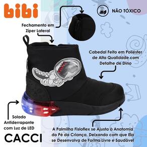 Procurando uma bota quentinha e estilosa para seu pequeno? Apresentamos a Bota Infantil Masculina Preta com estampa de Dino e luzes, perfeita para os meninos que amam aventuras jurássicas e querem se destacar em cada passo! Confeccionada em poliéster, ela é leve, respirável e oferece liberdade de movimento, além de proporcionar maciez e conforto ao caminhar. O calce fácil garante praticidade no dia a dia, tornando essa bota uma excelente aliada para as brincadeiras e atividades escolares.