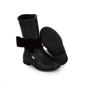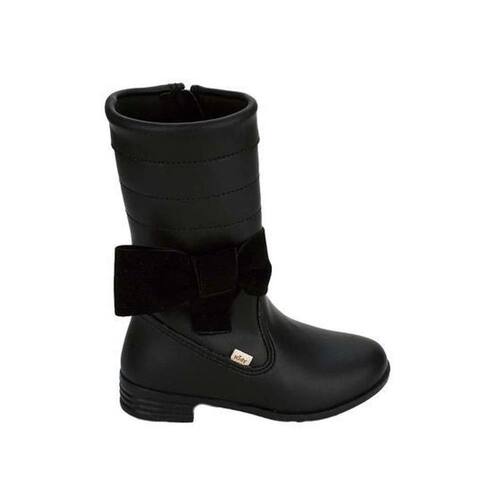 Bota Kidy Menina Preto Ref:036.0037.. Bota Infantil estilo Montaria para esquentar e proteger os pezinhos nos dias mais frios.. Com cano um pouco mais alto foi desenvolvida com materiais de alta qualidade, bem flexíveis e macios para trazer todo cuidado e conforto que as meninas precisam na fase dos Primeiros Passos.. Possui enfeite de laço em material camurça que traz um ar mais delicado e sofisticado, perfeita para compor os looks mais moderninhos dos dias de inverno.. A sola em TR antiderrapante apresenta maior aderência e estabilidade nas pisadas garantindo segurança para brincar, correr e se divertir..
