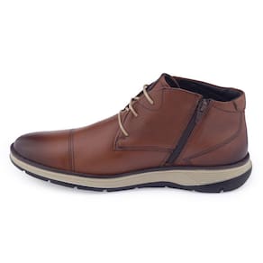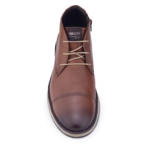 Bota Ferracini masculina social Fluence 5542 fabricado em couro natural liso, é um modelo moderno e traz elegância. Seu bico redondo é afinado, apresenta um degradê alongando a silhueta. Sua palmilha fixa é macia, almofadada, forrada com revestimento têxtil e aplicação da logo da marca, o calçado é todo forrado internamente para proporcionar conforto e bem estar aos pés. O fechamento é por cadarço elástico. O solado emborrachado e possui frisos para maior segurança, apresenta um solado inteiriço tendo na parte traseira 3cm de altura e na parte frontal 1,5cm de altura, tanto o solado quanto a palmilha apresentam sistema Float de conforto.