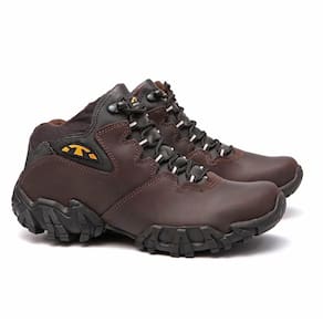 - Material: Couro natural resistente à água. - Palmilha: EVA antibacteriana, garantindo conforto e higiene. - Sola: Borracha antiderrapante com costura reforçada. - Fechamento: Cadarço ajustável para maior segurança. - Tecnologia: POWER GRIP para máxima tração.