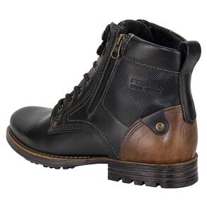 A Bota Masculina Coturno Pegada é confeccionada em Couro de alta qualidade com acabamento em costura, fechamento por cadarço e zíper lateral, forro interno em têxtil, palmilha em EVA e solado em borracha antiderrapante. Esse modelo possui cano com treze centímetros de altura por trinta centímetros de circunferência.