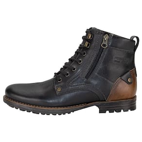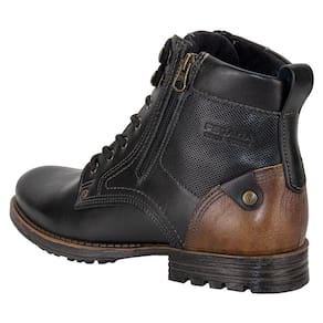 A Bota Masculina Coturno Pegada é confeccionada em Couro de alta qualidade com acabamento em costura, fechamento por cadarço e zíper lateral, forro interno em têxtil, palmilha em EVA e solado em borracha antiderrapante. Esse modelo possui cano com treze centímetros de altura por trinta centímetros de circunferência.