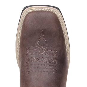 Bota masculina Cow Way fabricada em couro na cor Café, possui cano alto, bico quadrado com florão costurado no peito do pé, vira com costura dupla e solado de borracha.