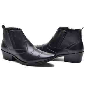 Bota Masculina Country Cano Curto Bico Fino Blaqueado Zíper - 41 - Preto