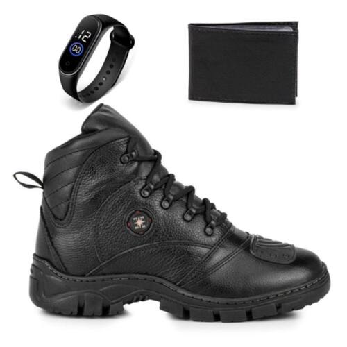 Coturno Masculino Couro Cross Preto Com Relogio e Carteira - Adventure Shoes