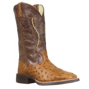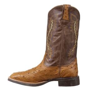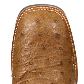 Bota Classic Masculina modelo Western, fabricada em couro Exótico de Avestruz na cor Marrom, possui cano longo bordado com reforço em couro macio na parte interna, forrada internamente, salto e solado de borracha antiderrapante.