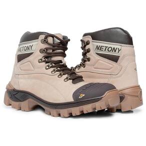 Bota Masculina em Couro com Solado Especial Durabilidade e Elegância em Cada Passo Bege - 41 - Bege