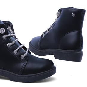 Detalhes Encantadores: Além de sua elegância e charme, esta bota possui cadarços em strass, adicionando um toque de estilo e diversão ao calçado, tornando-o perfeito para o universo infantil.