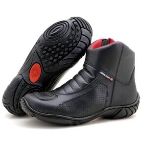 Projetada para quem busca o máximo de desempenho e segurança, esta bota combina um design moderno com tecnologia. Confeccionada em couro, ela possui detalhes perfurados para respirabilidade e partes acolchoadas para proteção. O solado de borracha robusto e antiderrapante foi desenvolvido para oferecer excelente aderência e estabilidade. A qualidade da construção é visível no design pensado para o calce prático e no forro interno, garantindo conforto e durabilidade para a sua jornada.