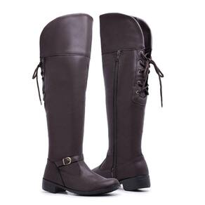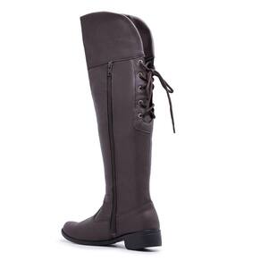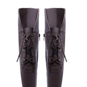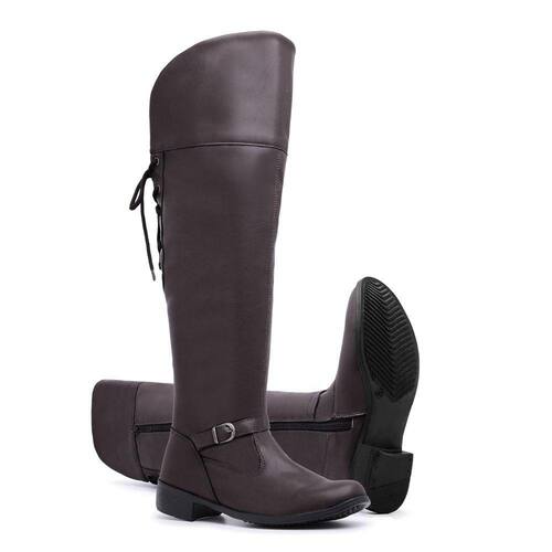 Bota Over Moda Chic Com Amarração e Fecho de Zíper Bico Redondo E Salto Grosso - 35 - Marrom