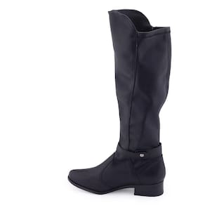 Bota cano longo Piccadilly 650073 é um lindo modelo que combina com tudo. Apresenta cano longo e flexível com aproximadamente 35cm de altura em material sintético liso e texturizado, por ser flexível e o material possuir stretch seu calce é de vestir como uma meia e tem como detalhe um botão de pressão com tira lateral externa. Sua palmilha interna é fixa, macia e revestida. A bota traz um bom encaixe ao pé e facilidade em calçar, seu bico é arredondado e o salto baixo é fachetado e possui 2,5cm de altura. Seu solado possui frisos para maior segurança.