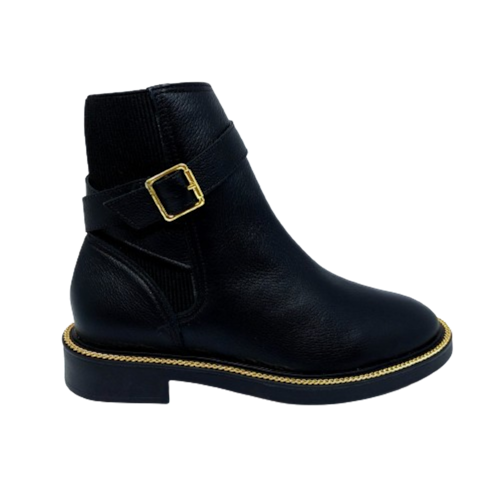 Feita em couro de alta qualidade, esta bota não só proporciona durabilidade, mas também estilo duradouro. Versátil e elegante, esta bota preta de cano curto pode ser combinada de várias maneiras para criar looks que vão do casual ao chique.