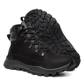 Bota Masculina Preta Adventure Trekking Solado Tratorado Casual para Trilhas, Caminhadas, Passeios feito em Couro na Cor Preto Reforçado Moderno, Resistente, Elegante, Confortável - Modelo Edição Limitada Novo Lançamento 2023 Estiloso com Fechamento em Cadarços