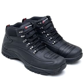 Bota Sapato Motoqueiro Resistente Masculino Solado Borracha Fechamento Cadarço Confortavel Trilha - 44 - Preto